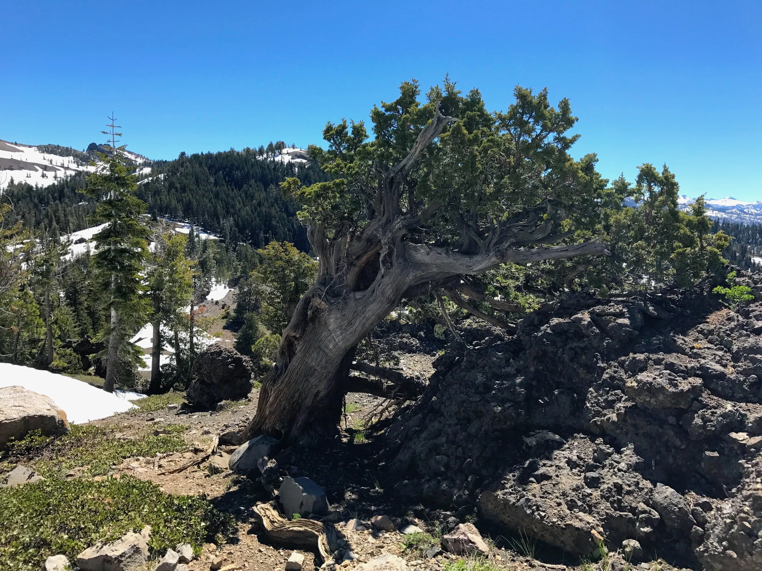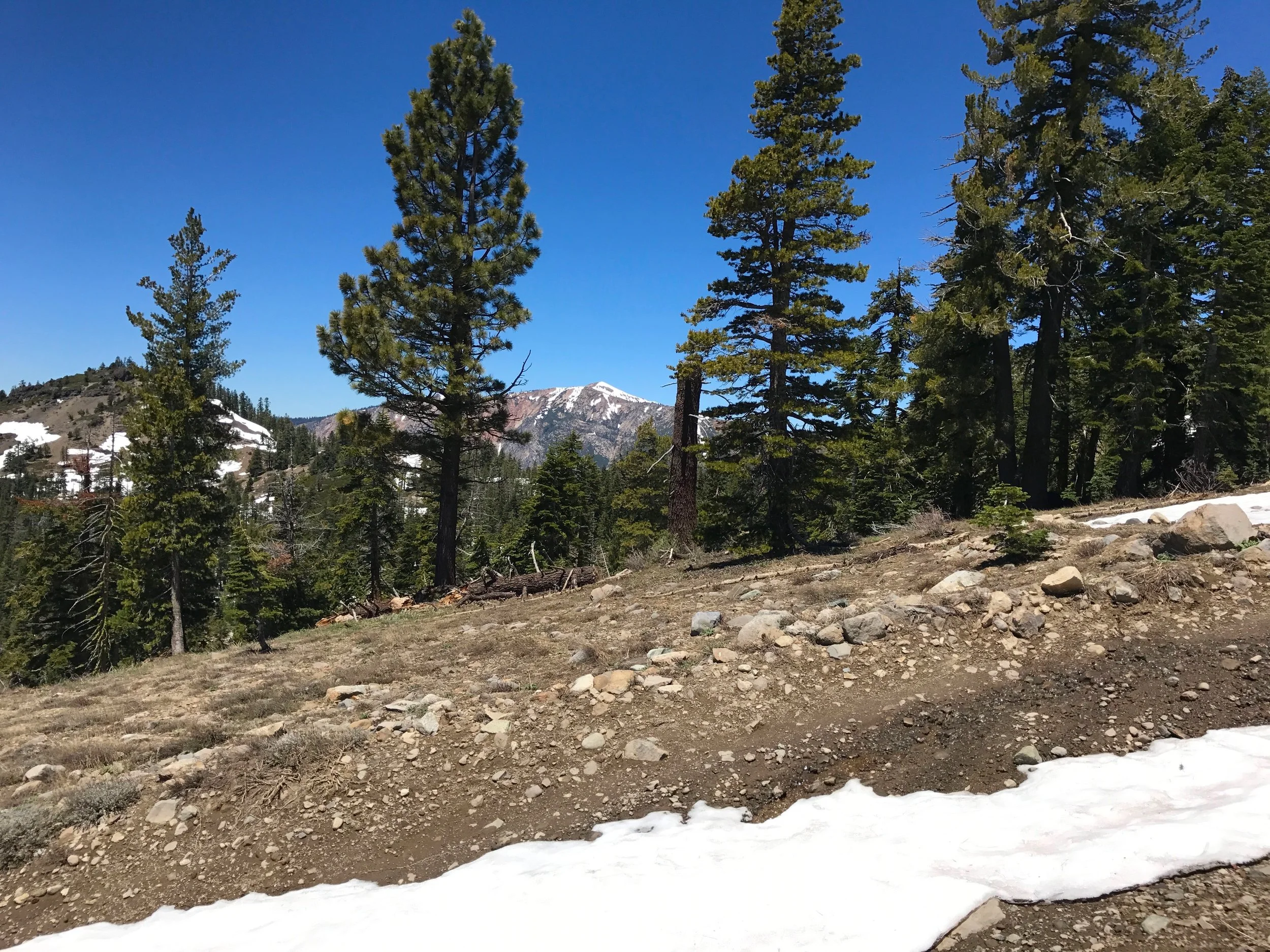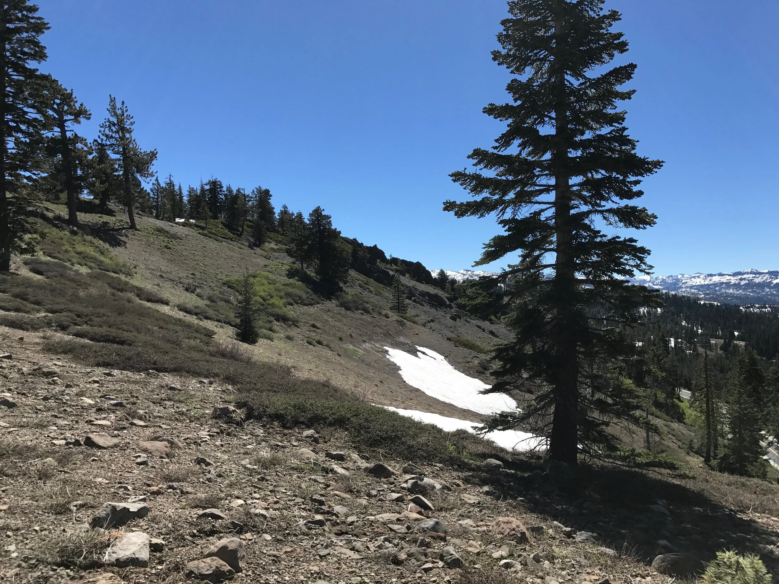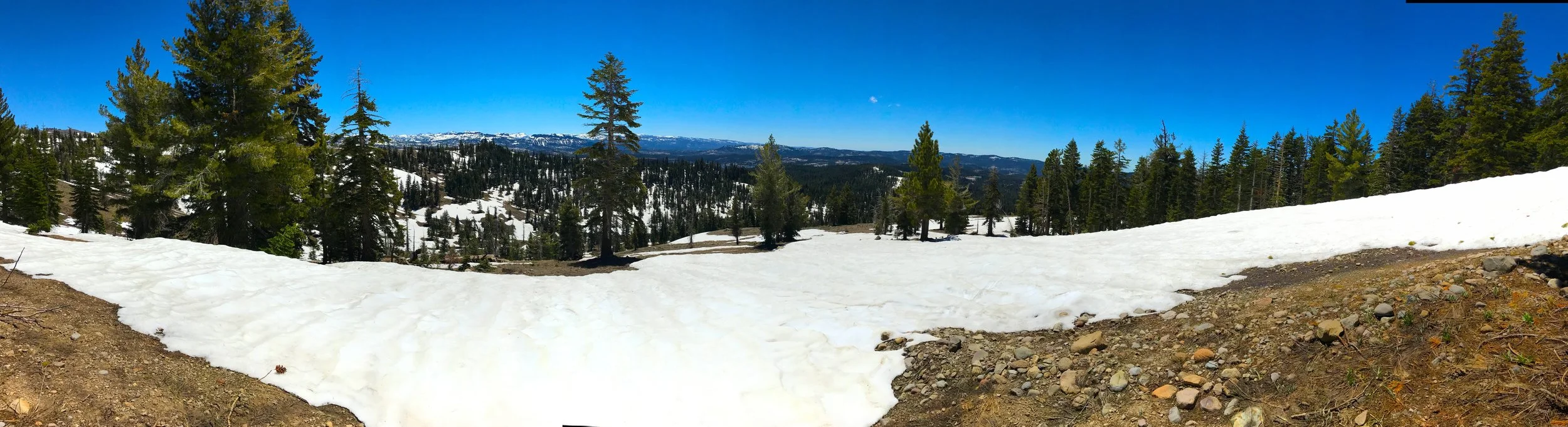 Joe Petkovich and Skip Lovelady set out for a full day of high altitude hiking in the Bear Valley, CA region of the majestic Sierra Nevada mountain range. Highway 4 was closed just east of Alpine Lake ensuring almost no people in the area. If that was not remarkable enough for mid-June, the reason for the road closure was the unprecedented snow fall this past winter and the utter destruction of many miles of highway 4 up and over Ebbett's pass. This snow fall also left thousands of square miles of the Sierra under many many feet of snow when we arrived. Example: one of the trails we planned on accessing as a means to get to the high country was under well over 10' of snow when we arrived. And that was only at 7100' el. Our plans changed and we scouted some off-trail access points to ridges flanking Mt. Reba (8755' el). The video and pictures below were mostly shot above 8000' and are a composite of three different bushwhacking efforts covering approximately 12 miles, and approximately 2400' of elevation change.