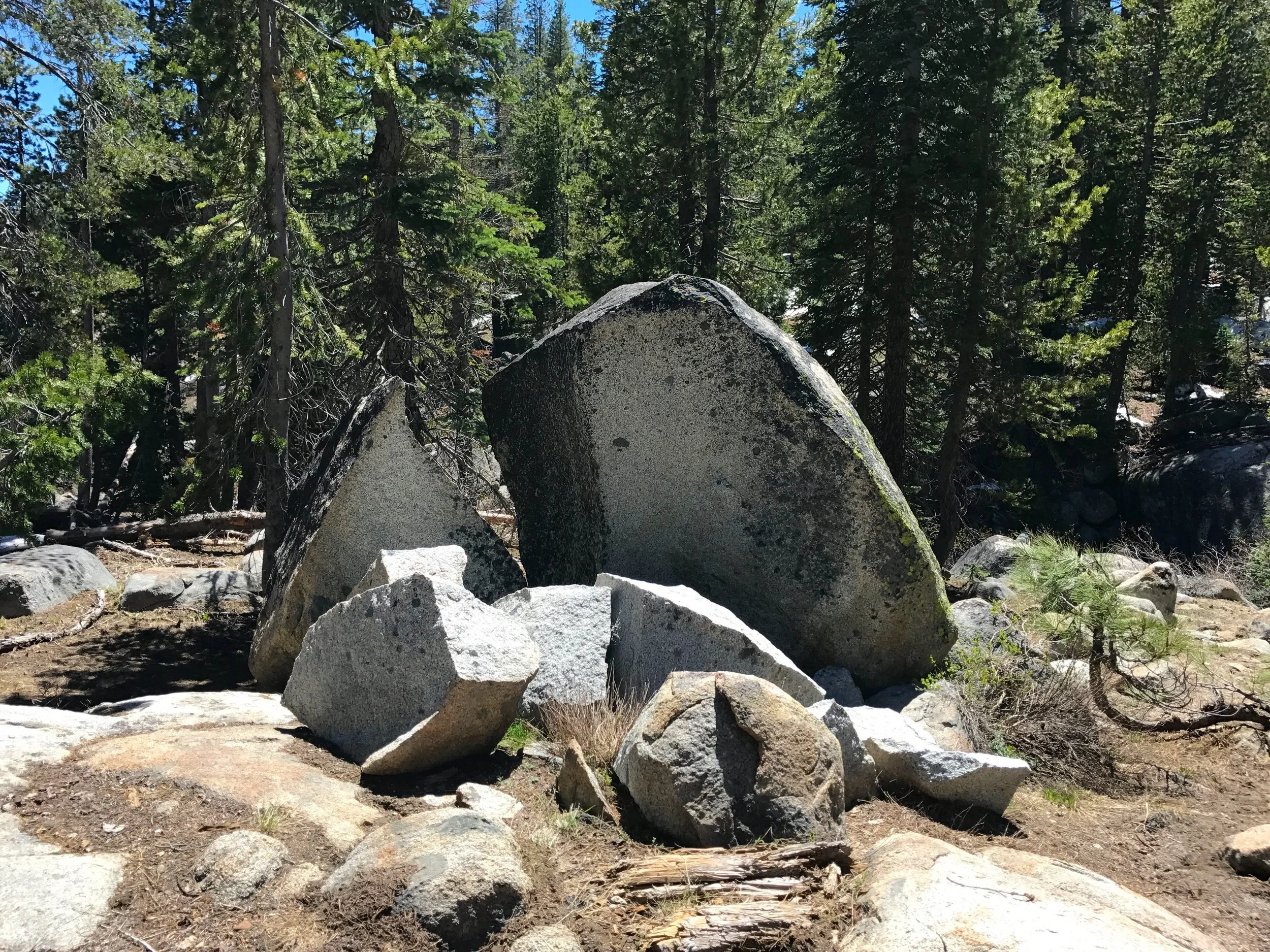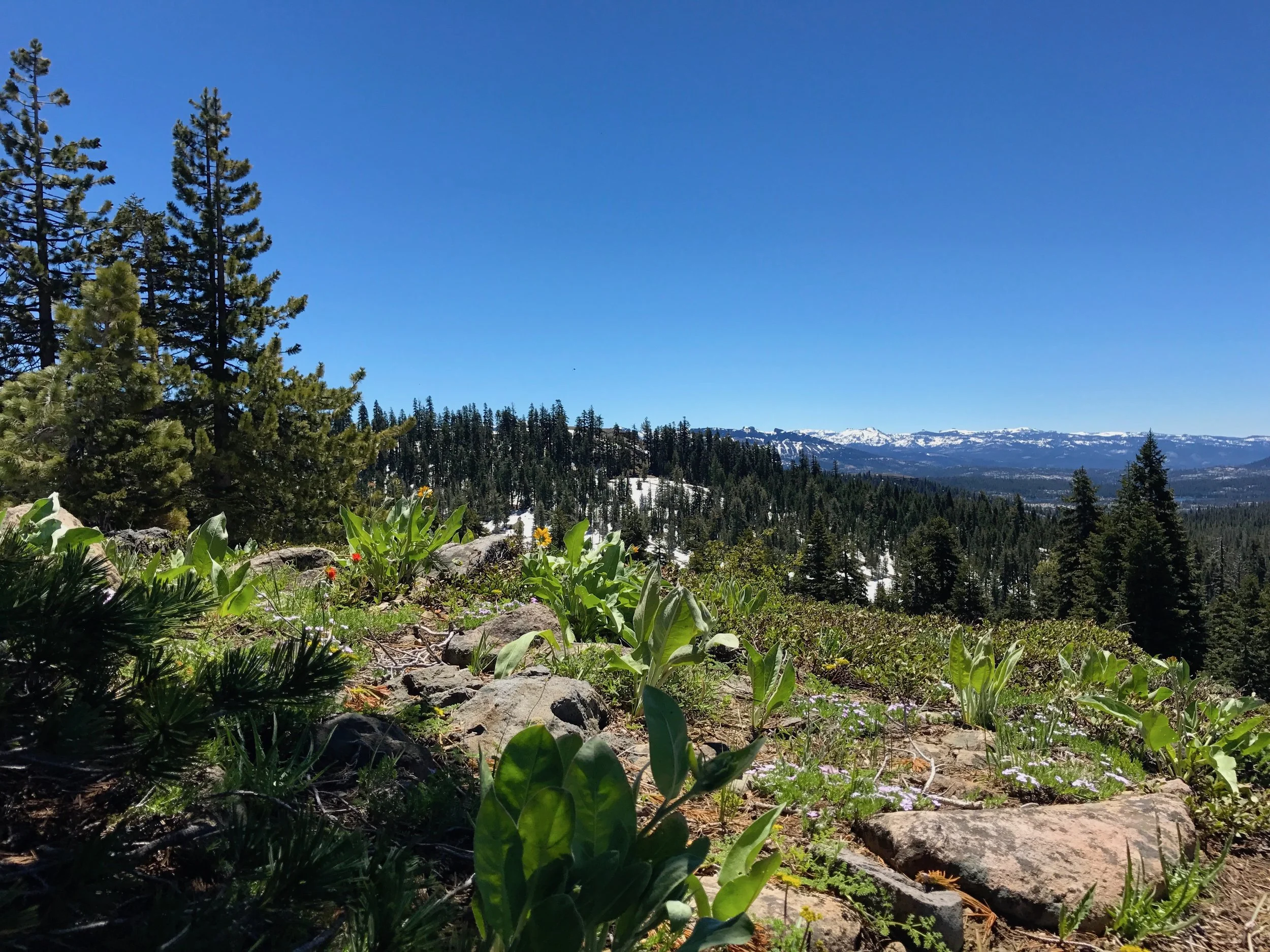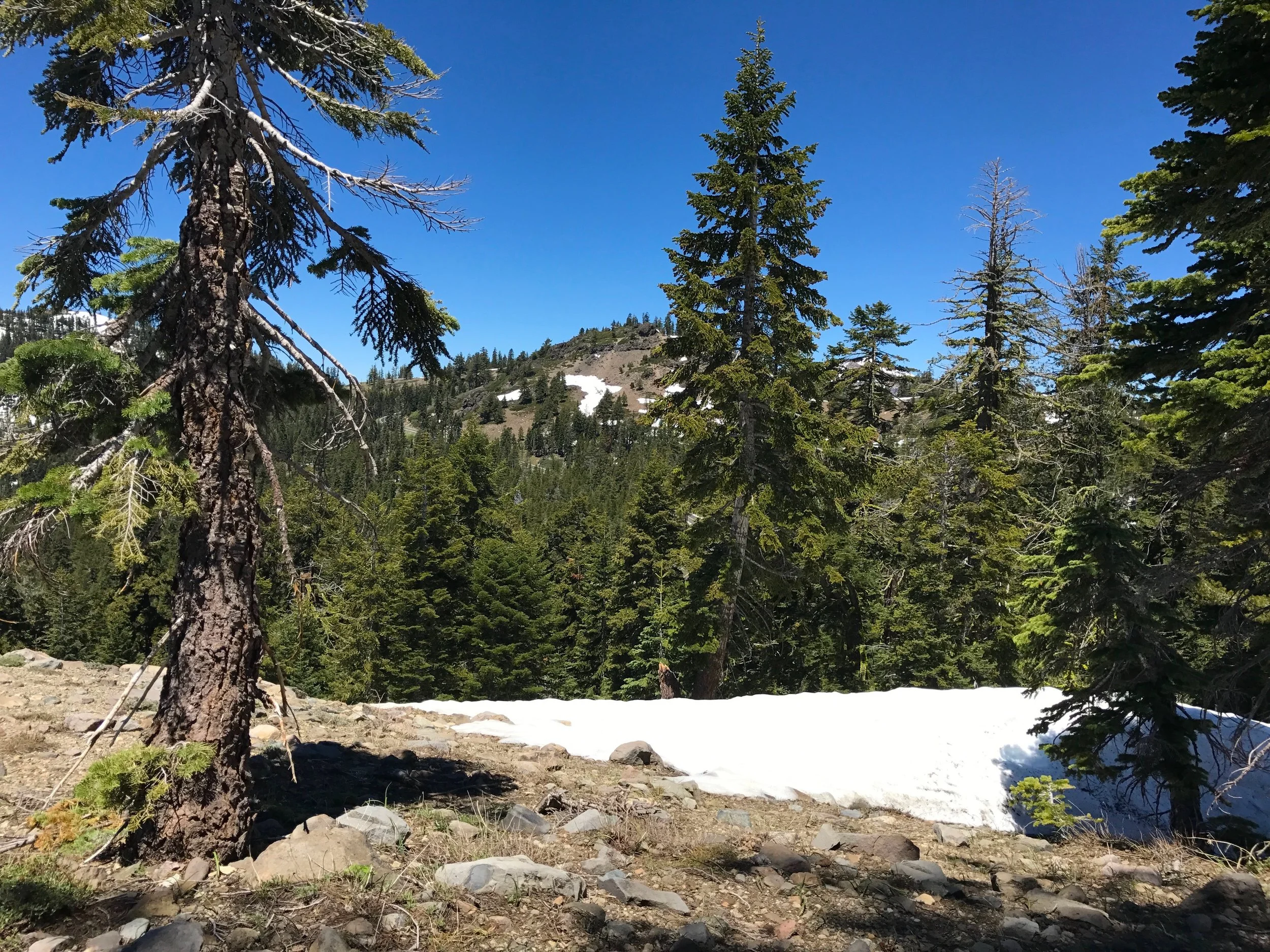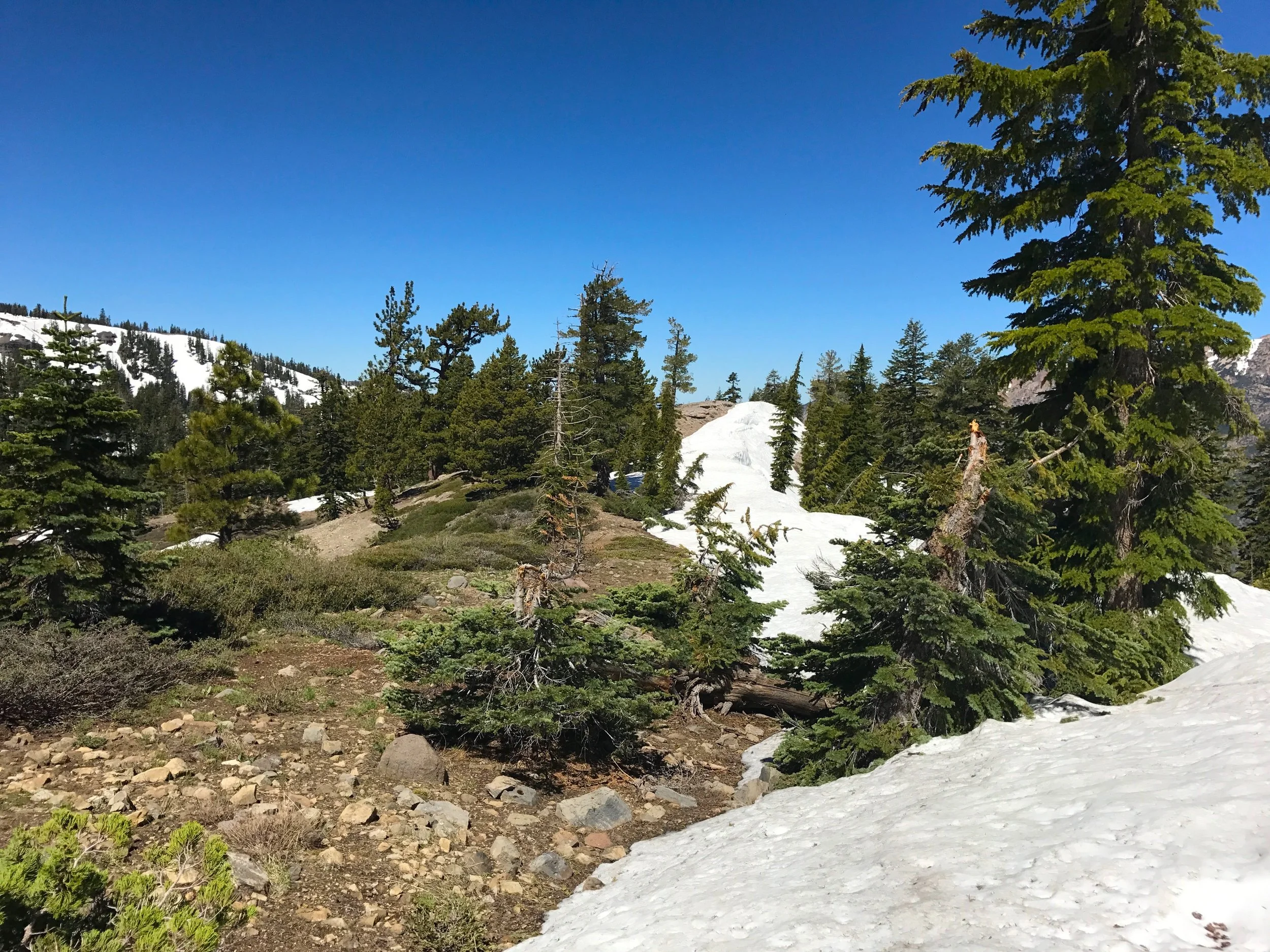 Joe Petkovich and Skip Lovelady set out for a full day of high altitude hiking in the Bear Valley, CA region of the majestic Sierra Nevada mountain range. Highway 4 was closed just east of Alpine Lake ensuring almost no people in the area. If that was not remarkable enough for mid-June, the reason for the road closure was the unprecedented snow fall this past winter and the utter destruction of many miles of highway 4 up and over Ebbett's pass. This snow fall also left thousands of square miles of the Sierra under many many feet of snow when we arrived. Example: one of the trails we planned on accessing as a means to get to the high country was under well over 10' of snow when we arrived. And that was only at 7100' el. Our plans changed and we scouted some off-trail access points to ridges flanking Mt. Reba (8755' el). The video and pictures below were mostly shot above 8000' and are a composite of three different bushwhacking efforts covering approximately 12 miles, and approximately 2400' of elevation change.