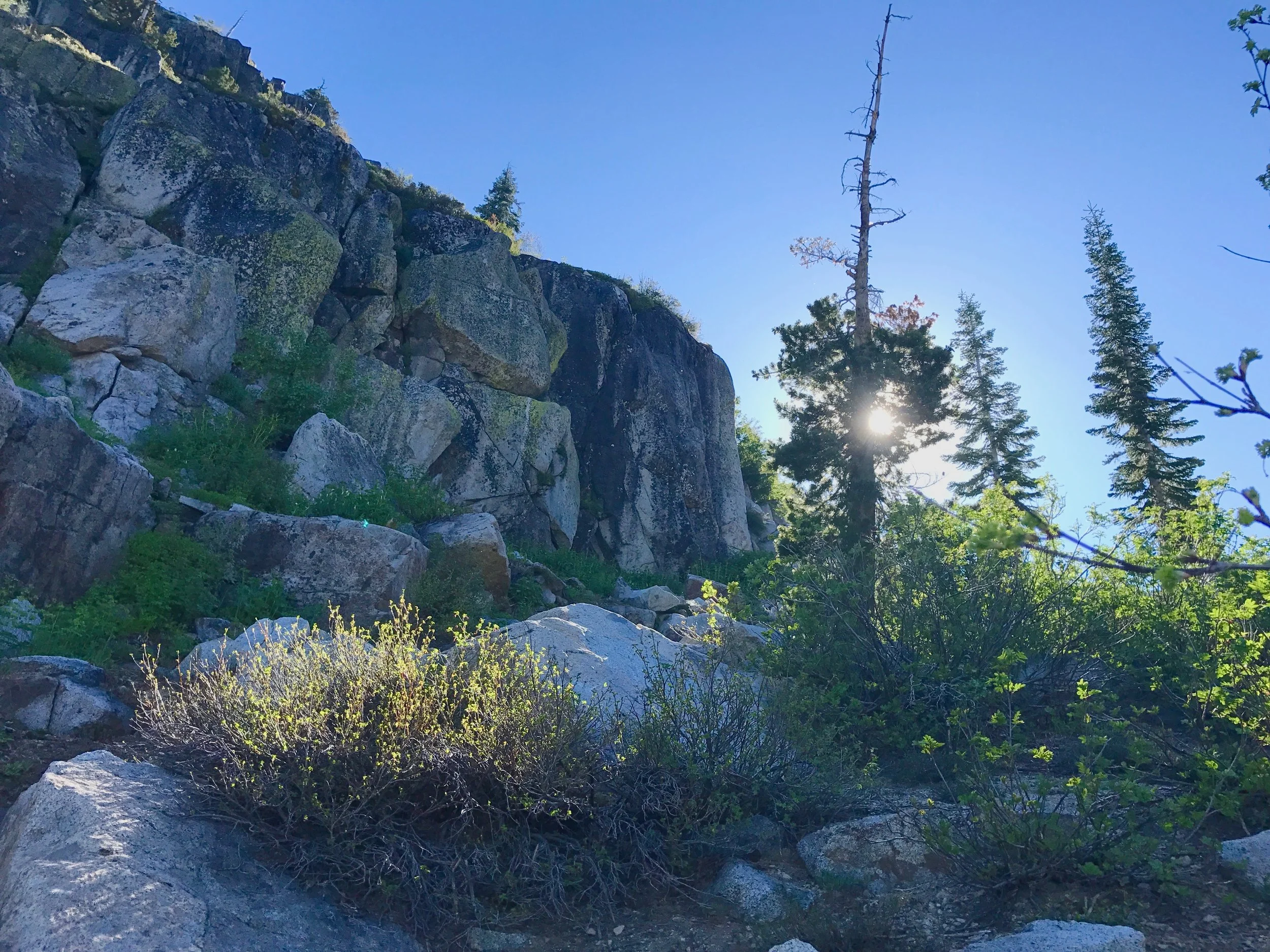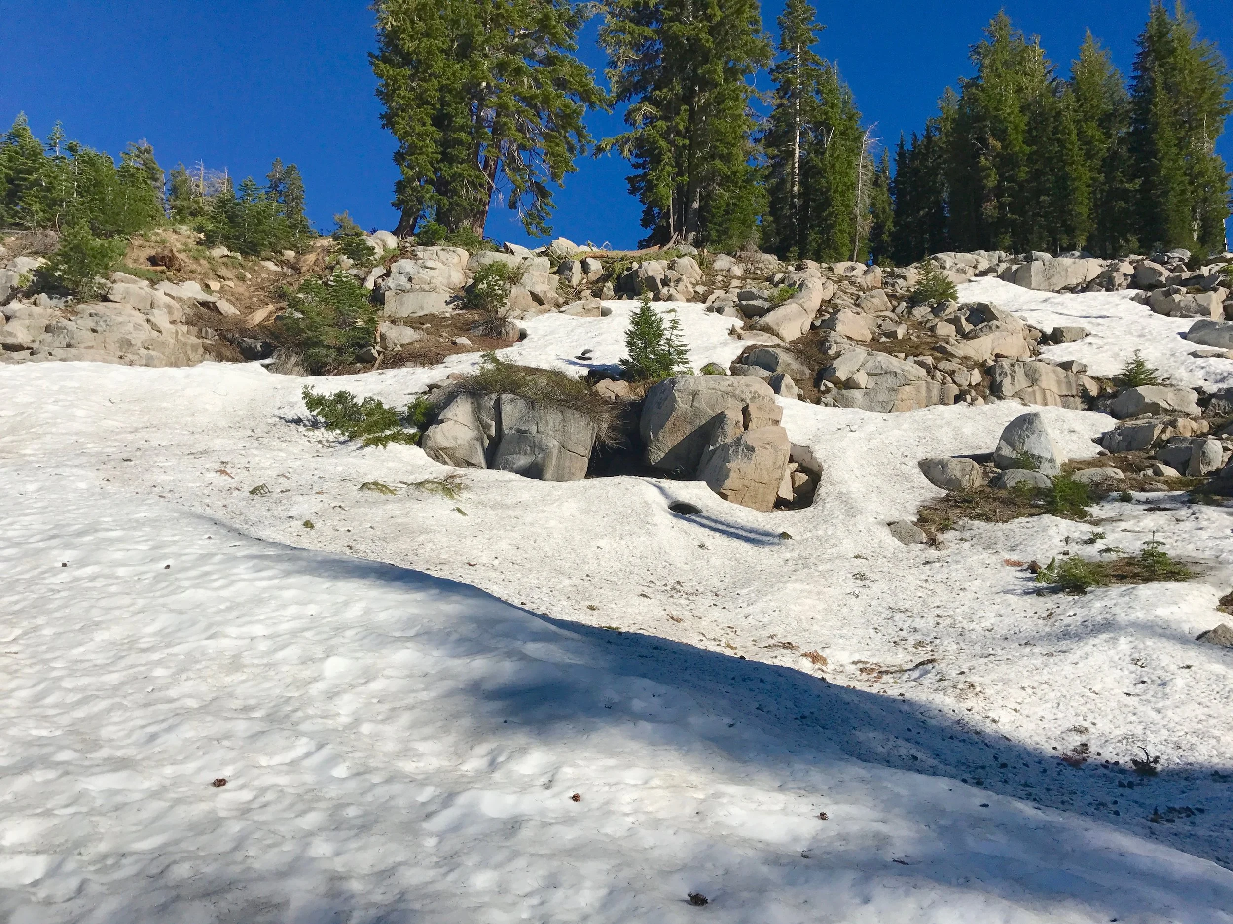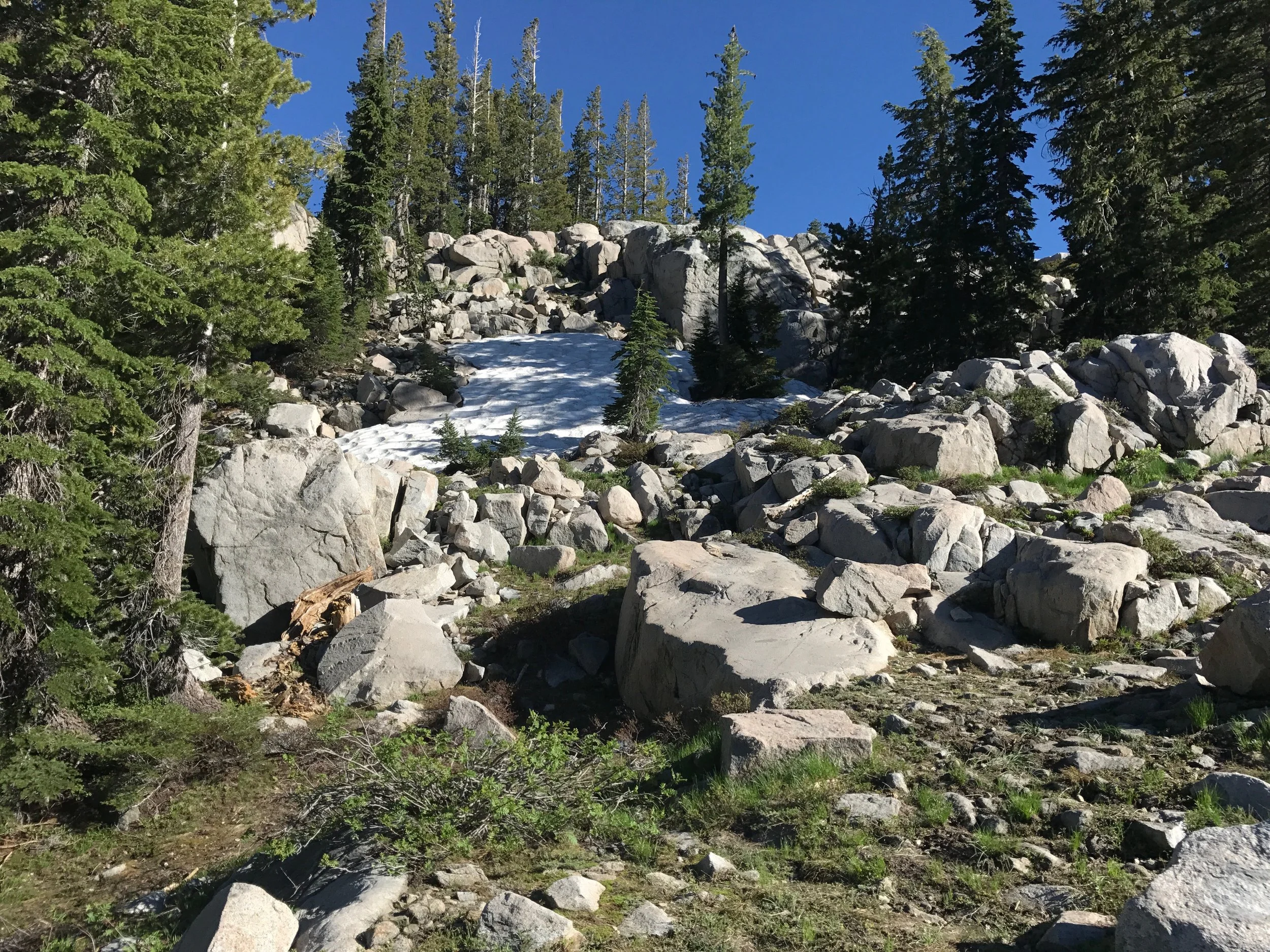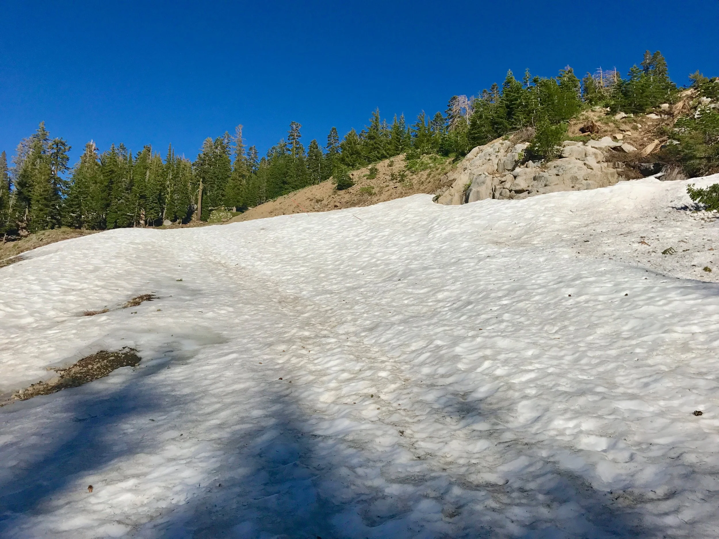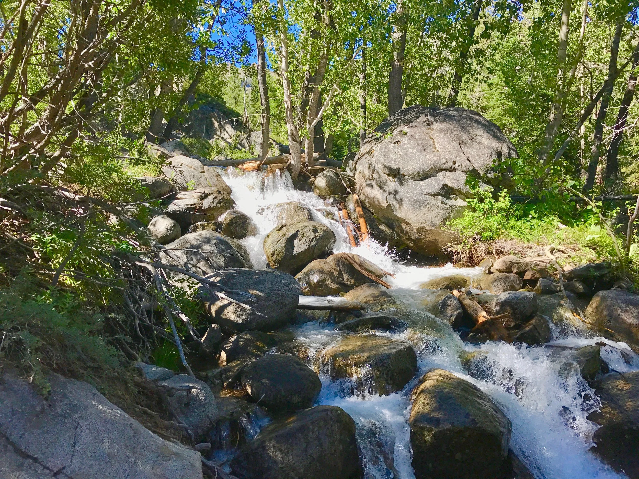 Monday July 17, 2017. Austin and I headed up the Shirley Canyon Trail in Squaw Valley, CA. The "trail" starts at 6200' elevation and terminates at High Camp, elevation 8200'. Options for getting down are a free ride on the Squaw Valley tram, or hike back down. Although we intended on taking the tram back (it was already after 4p when we started up), the tram had stopped running for the day when we "summited". My bad. So we hiked down a couple of the ski runs. Took about 1.5 hours to walk down. Squaw Valley ski resort is really big. The creek is seasonal and fed solely from snow run off. We have hiked this trail in the past when by mid-summer the stream is a trickle or not running at all. But not this year!
